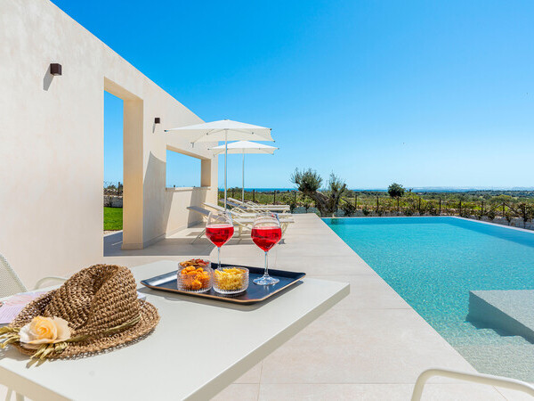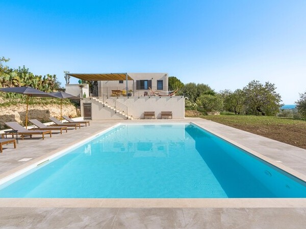 Modernes Ferienhaus "Sike" auf Sizilien mit privatem Pool, 3 Schlafzimmern & Klimaanlage. Ruhige Lage mit Blick auf Olivenhaine, nur 14 km vom Meer entfernt!