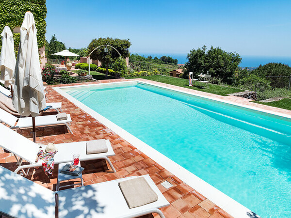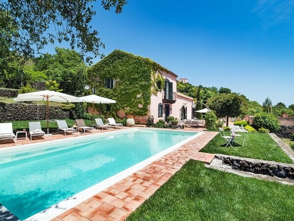 Genießen Sie den luxuriösen Aufenthalt in der Villa Zafferana Etnea, einem charmanten Landhaus mit Privatpool, umgeben von der Natur am Ätna.
