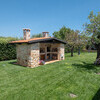 Outdoor-Küche, Grill und mehrere Essbereiche im Garten