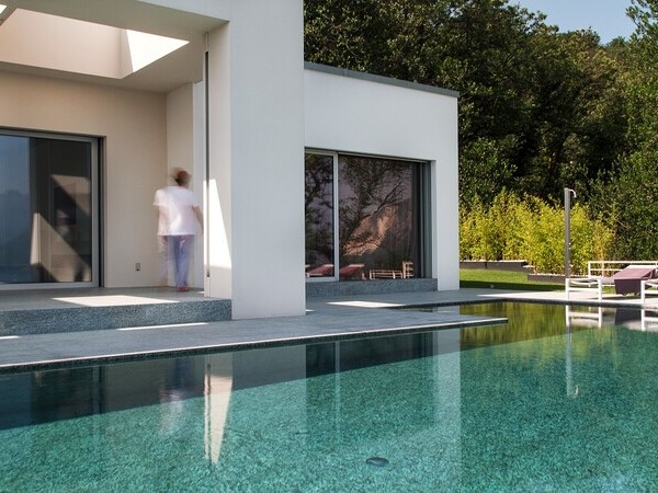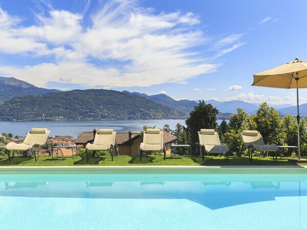 Villa Camilla in Stresa: moderne Luxusvilla mit Infinity-Pool (14 x 4,5 m), Panoramablick auf Lago Maggiore & Borromäische Inseln, in fußläufiger Nähe zum Zentrum.
