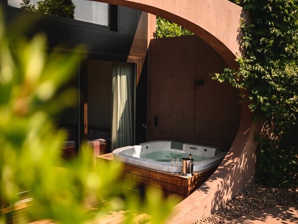 Villa Baronessina bietet modernes Design, einen beheizten Infinity-Pool und eine Sauna. Perfekt für einen erholsamen Urlaub inmitten von Weinbergen im historischen Kaltern, Südtirol.