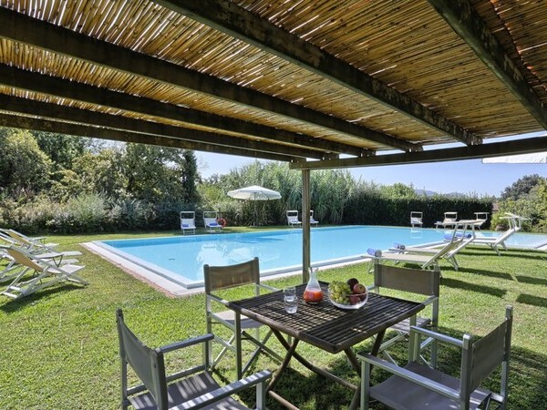 Erleben Sie die Toskana in Villa Clara, ein Herrenhaus aus dem 18. Jahrhundert mit privatem Pool und Park, ideal für große Gruppen nahe Lucca.