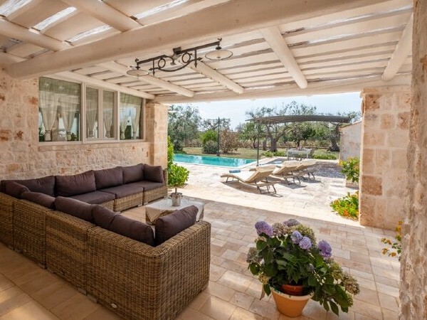 Mieten Sie die Villa Niraclò in Apulien – Ferienhaus mit beheiztem Pool (15x8 m), Klimaanlage, 6 Schlafzimmern und idealer Lage nahe den Stränden und Sehenswürdigkeiten von Carovigno und Ostuni.
