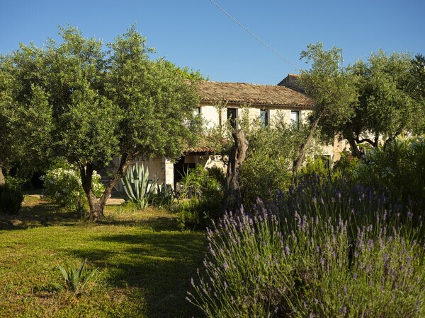 Entdecken Sie die exquisite Villa Olivo mit beheiztem Pool, Tennisplatz und Meernähe. Genießen Sie Luxus und Ruhe in den sanften Hügeln von Le Marche, nur 10 Minuten von der Adria entfernt.