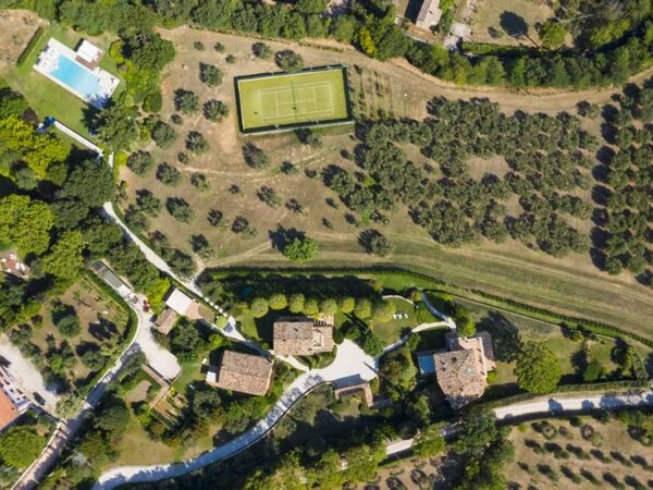 Erleben Sie pure Entspannung in der Villa Oliveto, einer luxuriösen 4-Schlafzimmer-Villa inmitten eines 8 Hektar großen Olivenhains mit Pool, Tennisplatz und Yoga-Studio.