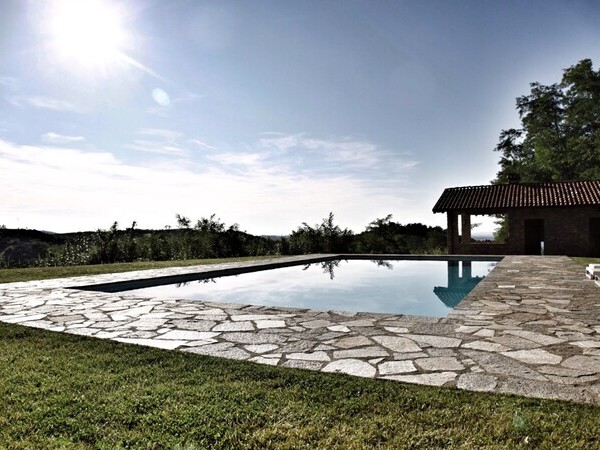 Genießen Sie absolute Ruhe in der Villa Sessame. Ein Steinhaus mit moderner Einrichtung, privatem Pool, Pizzaofen und traumhaftem Blick über die Hügel des Piemonts.