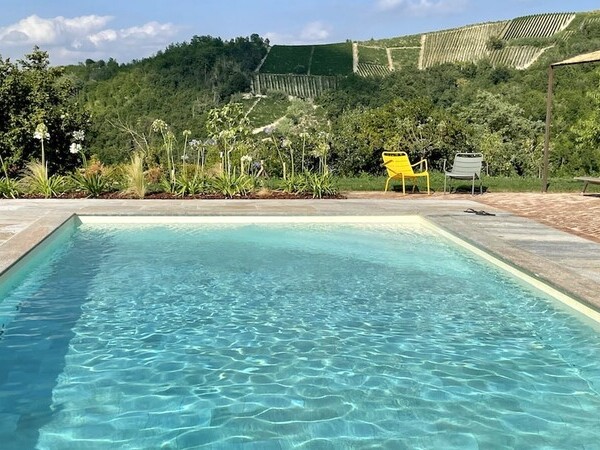 Exklusive Villa in Gabiano, Piemont: privater Pool, finnisches Badefass, Designer-Interieur & Weinverkostungen. Perfekt für Genießer & Ruhesuchende.