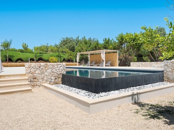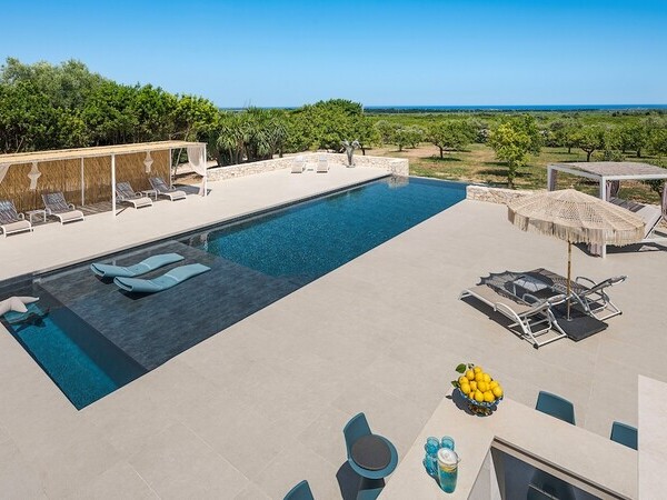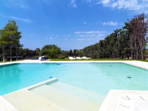 Masseria Ceratonia – exklusive Villa mit Pool in Gallipoli (Salento, Apulien). 7 Schlafzimmer mit Bad, Infinity-Salzwasserpool, Hauspersonal und Nähe zu den Stränden des Ionischen Meeres. Ideal für Ferien, Hochzeiten & Events.