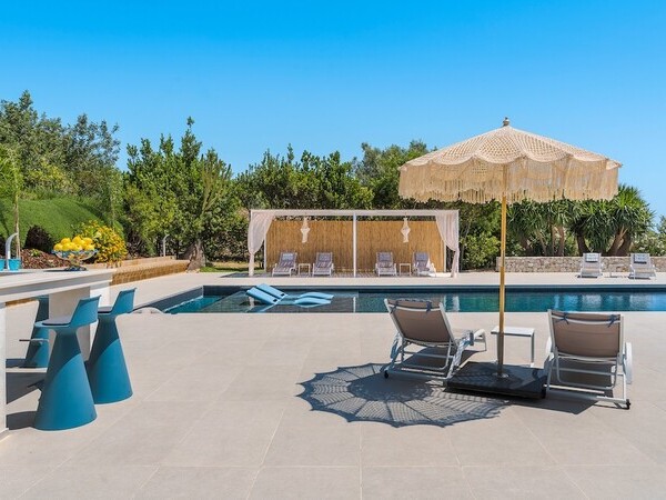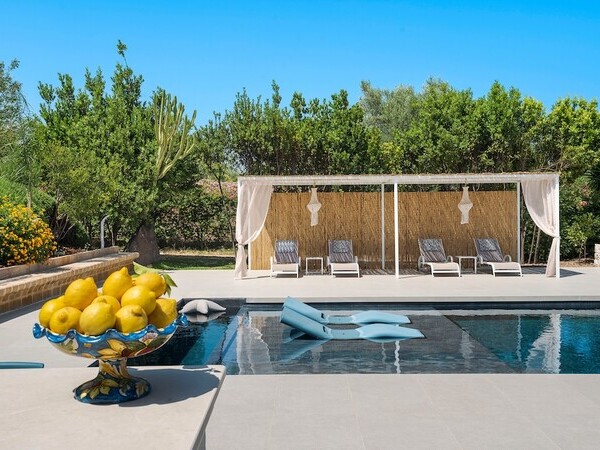 Entspannen in der Villa Pigna Blue nahe Noto. Salzwasserpool, Garten und nahe Calamosche-Strand. Entdecken Sie Siziliens Barockstädte und Naturparadiese.