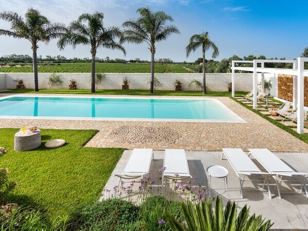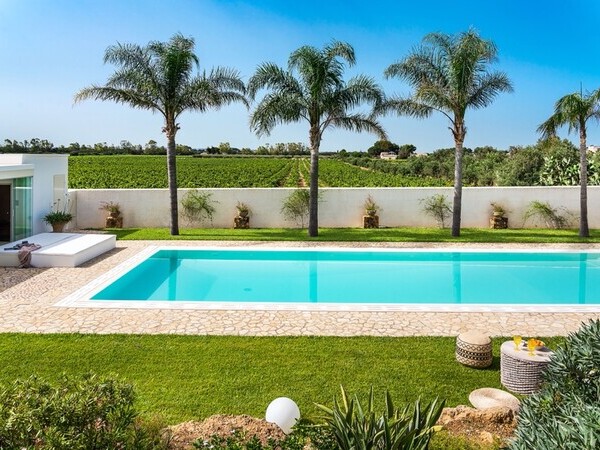 Mieten Sie die Masseria Tufo Bianco, ein charmantes Ferienhaus in Apulien mit privatem Pool, idyllischem Garten und stilvollen Innenräumen – nur wenige Minuten vom Meer entfernt.