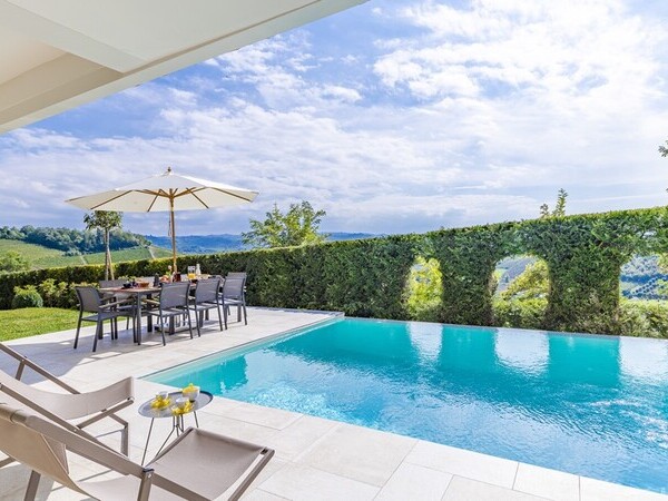 Villa Oltre la Siepe in den Langhe, Piemont: Moderner Komfort, Weinbergblick und Infinity-Pool. Perfekt für Weinliebhaber und Genießer.