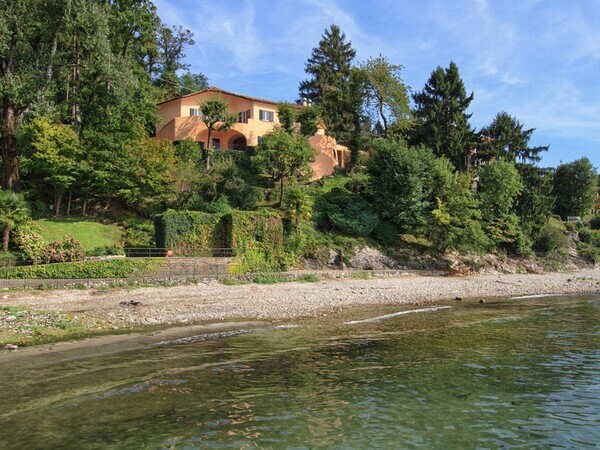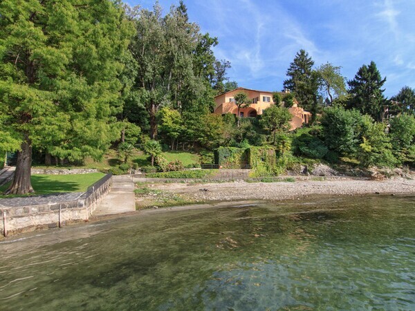 Ferienhaus direkt am Lago Maggiore mit privatem Seegrundstück, Garten und Panoramablick. Reno di Leggiuno, fußläufig zum Strand.