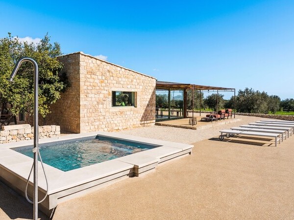 Erleben Sie Luxus in der Villa Bellavista in Apulien. Mit privatem Garten, beheizbarem Pool, Klimaanlage und atemberaubendem Blick auf Ostuni. Restaurant in Gehweite.