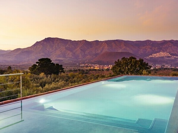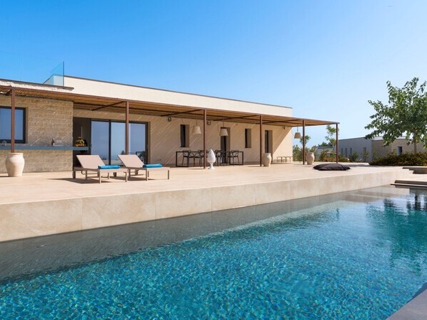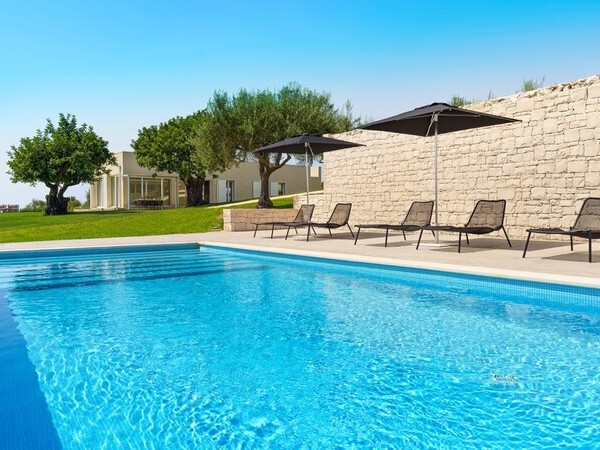 Entdecken Sie die Villa Tangi, ein neu errichtetes modernes Landhaus mit Privatpool, das atemberaubende Aussichten und luxuriöse Einrichtung im ländlichen Sizilien bietet.