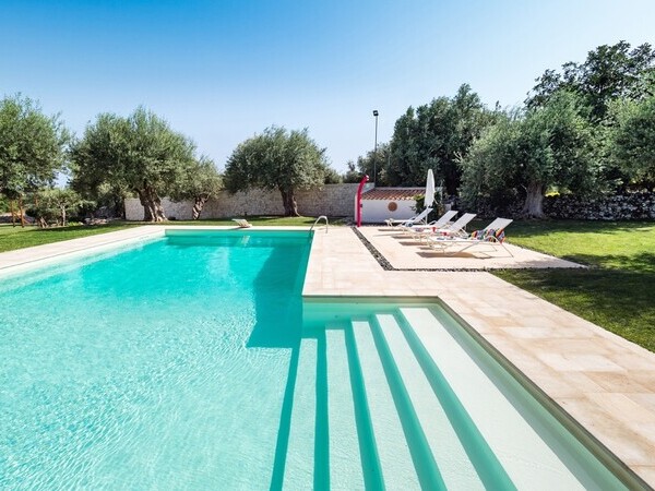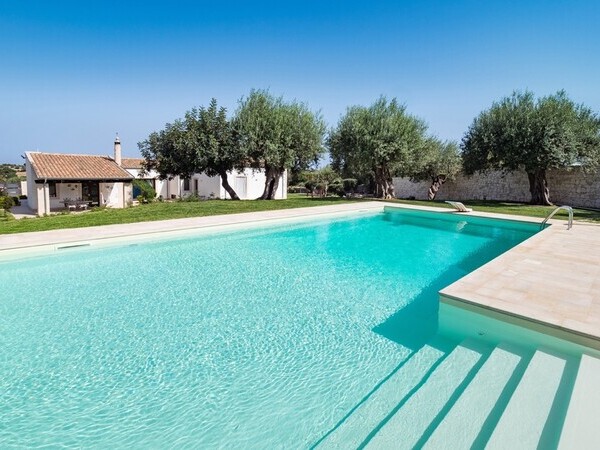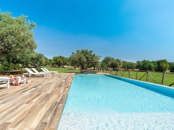 Entspannen in der Villa Pigna Blue nahe Noto. Salzwasserpool, Garten und nahe Calamosche-Strand. Entdecken Sie Siziliens Barockstädte und Naturparadiese.