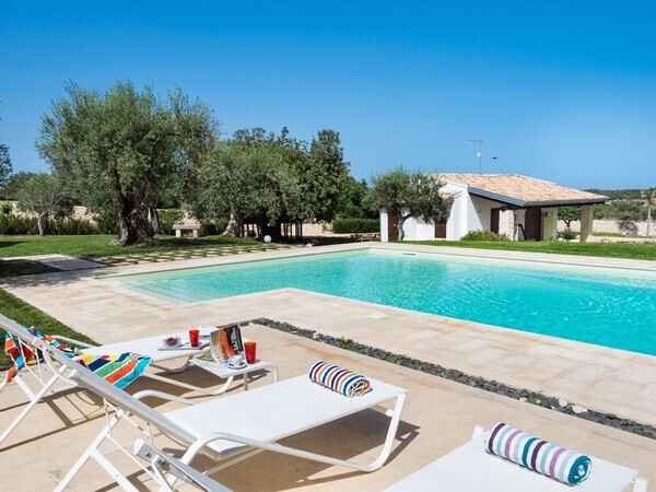 Entdecken Sie Casa degli Aranci, eine luxuriöse Villa nahe Avola mit privatem Pool, üppigem Garten und idealer Lage, perfekt für einen Familienurlaub in Sizilien.
