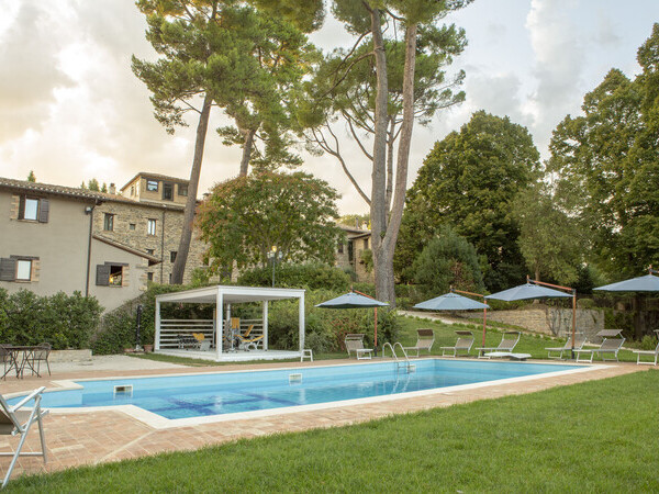 Villa Teloni in San Severino Marche: historische Villa für bis zu 48 Personen. 16 Suiten, Pool, Park, Fitnessraum und ideale Location für Gruppen, Hochzeiten und Retreats.