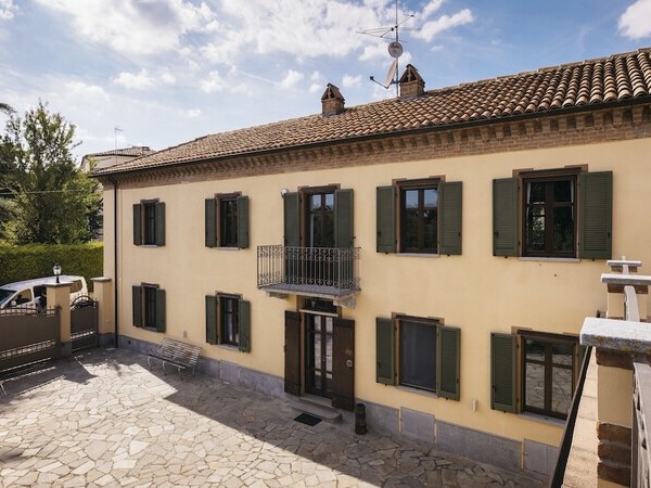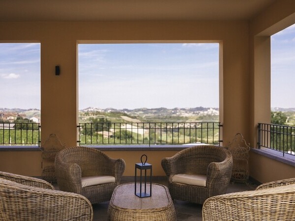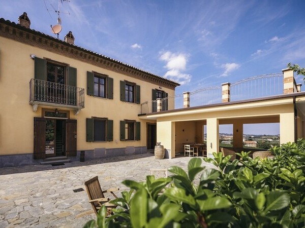 Elegantes Ferienhaus im Piemont zwischen Alba und Asti, umgeben von Weinbergen, mit privatem Pool, Panoramablick, stilvollen Innenräumen und großzügigen Außenbereichen.